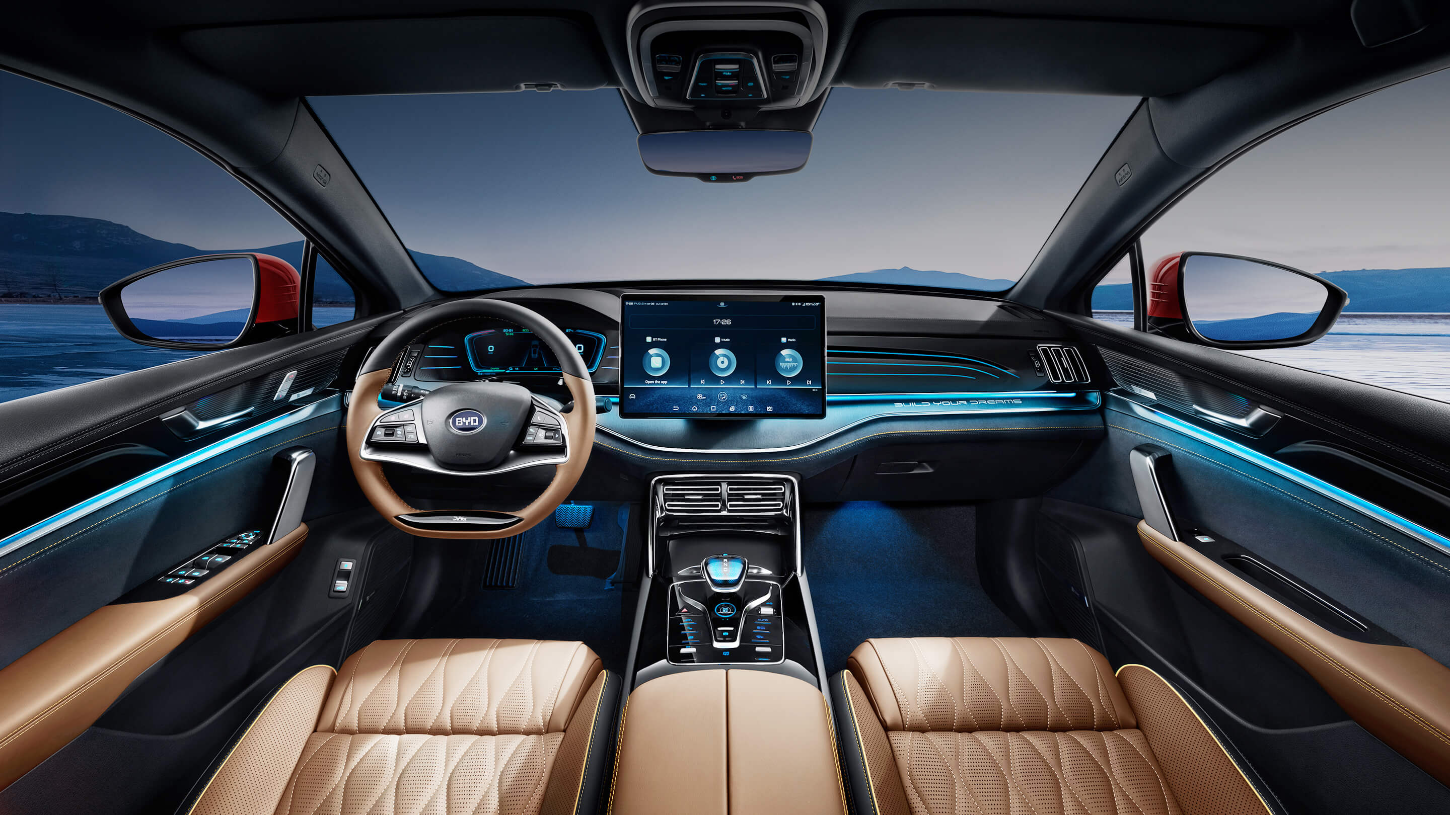 Mientras que el TANG EV aísla a sus ocupantes del mundo exterior, su paquete tecnológico mantiene a conductores y pasajeros conectados, con una pantalla táctil giratoria compatible con millones de aplicaciones