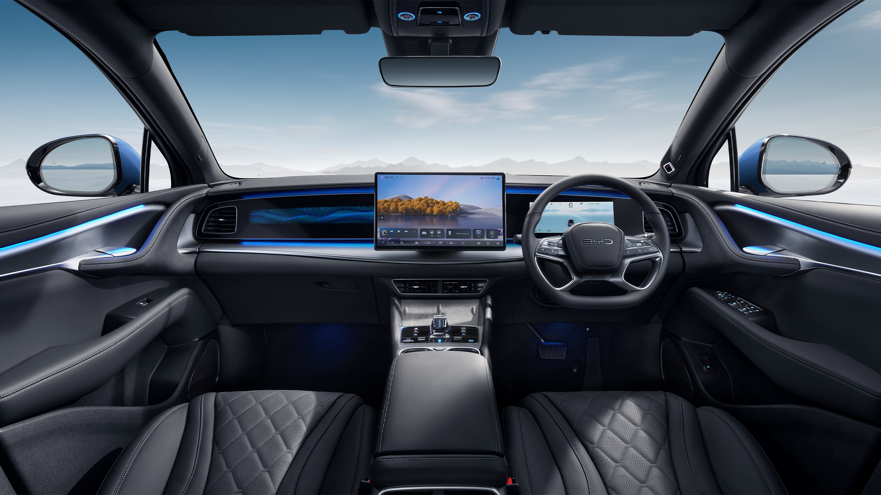 內部線條延續外觀的流動設計,詮釋多樣的海洋元素,主儀表的裝飾面板順延穿過鏤空的“懸浮之翼“,向門板延伸一氣呵成。